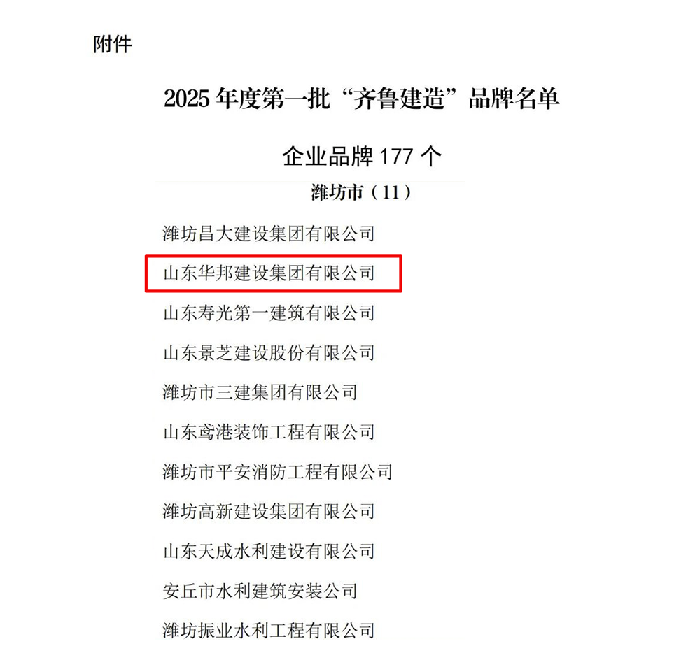 山东华邦建设集团是一家拥有建筑工程施工总承包特级资质集建筑、市政公用、园林绿化工程施工,房地产开发,工程设计,建材生产与销售,物业管理,建筑劳务输出等于一体的全国大型企业。是山东省建筑业三十强企业,并荣获中国建筑业成长性百强企业、全国优秀施工企业、全国建筑业科技创新先进企业、全国建筑业AAA级信用企业等几十项国家级荣誉称号。